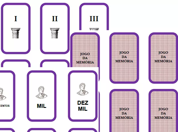 O jogo da memória é divertido e interativo, o que torna o aprendizado dos algarismos romanos mais atraente. A ludicidade mantém os alunos motivados e interessados, incentivando a participação ativa. Aprender algarismos romanos pode ser integrado a outras disciplinas, como história e literatura, onde esses números são frequentemente encontrados. Isso oferece uma abordagem interdisciplinar ao aprendizado.